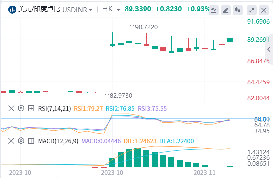 印度卢比日内交投疲软。自9月以来,美元/印度卢比交投於83.00-83.35震荡区间。日图显示,美元/印度卢比维持在关键的100天和200天指数移动均线(EMA)上方,看涨潜力保持不变。