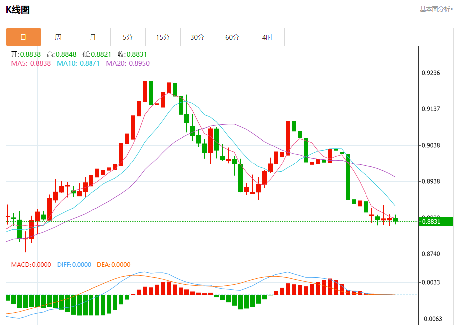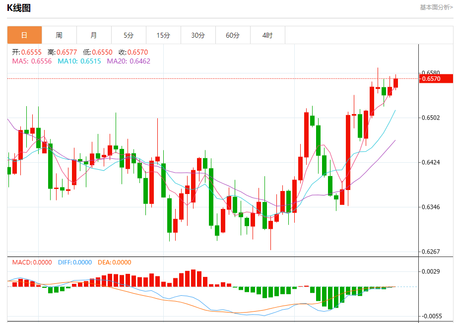 今日周五,澳元兑美元报0.6571,涨幅0.22%;美元兑加元报1.3680,跌幅0.11%;美元兑瑞郎报0.8831,跌幅0.10%。