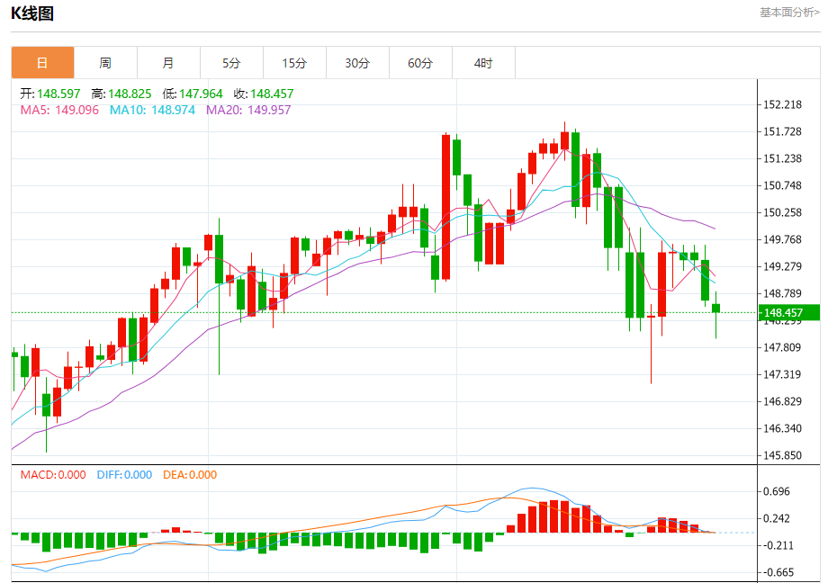 技术点评:只要148.80阻力位不被突破,向下跌破147.95位置的风险很高。