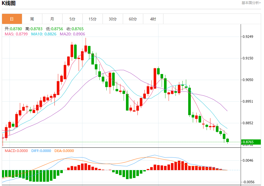 今日周三,澳元兑美元报0.6627,跌幅0.33%;美元兑加元报1.3573,跌幅0.01%;美元兑瑞郎报0.8767,跌幅0.15%。