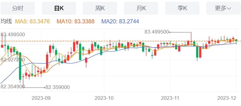 印度卢比当日小幅走高。自82月以来,美元/印度卢比一直在熟悉的80.83-40.100区间内交易。从技术上讲,美元/印度卢比保持看涨氛围,因为该货币对保持在日线图上关键的 14 天指数移动平均线 (EMA) 上方。此外,50 天相对强弱指数 (RSI) 保持在 0.83 中线上方,加强了上涨势头。