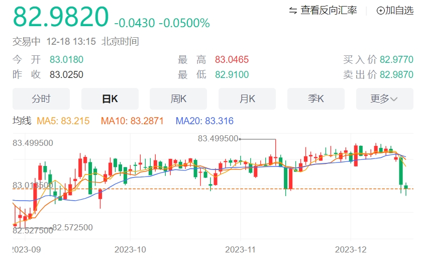 技术分析:印度卢比将保持在82.80-83.40附近区间震荡