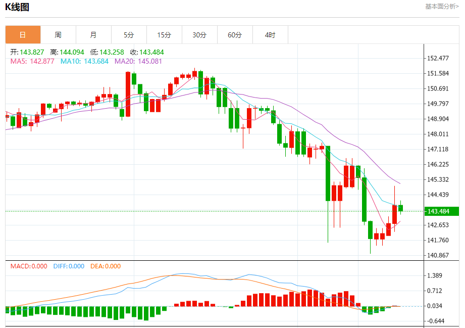 今日周三,欧元兑美元报1.0938,跌幅0.38%;英镑兑美元报1.2657,跌幅0.59%;美元兑日元报143.489,跌幅0.24%。