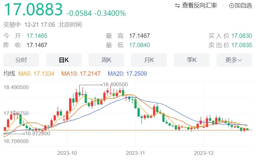 美元/墨西哥比索汇率走势分析:在17.10附近小幅走低 关注美国数据