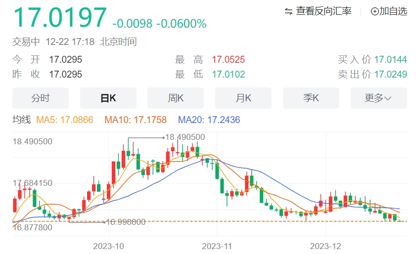 美元/墨西哥比索价格分析:在17.01附近小幅走低