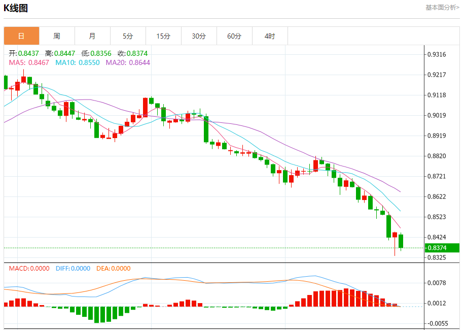 今日周五,澳元兑美元报0.6794,跌幅0.47%;美元兑加元报1.3255,涨幅0.20%;美元兑瑞郎报0.8376,跌幅0.86%。