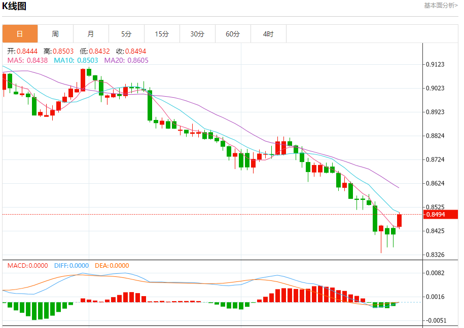 今日周二,澳元兑美元报0.6788,跌幅0.34%;美元兑加元报1.3291,涨幅0.29%;美元兑瑞郎报0.8496,涨幅0.97%。