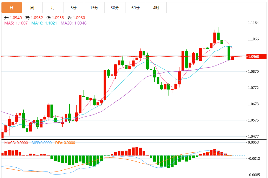 周三,欧元/美元徘徊于1.0959关口下方,现交投于1.0958附近,涨幅0.18%。