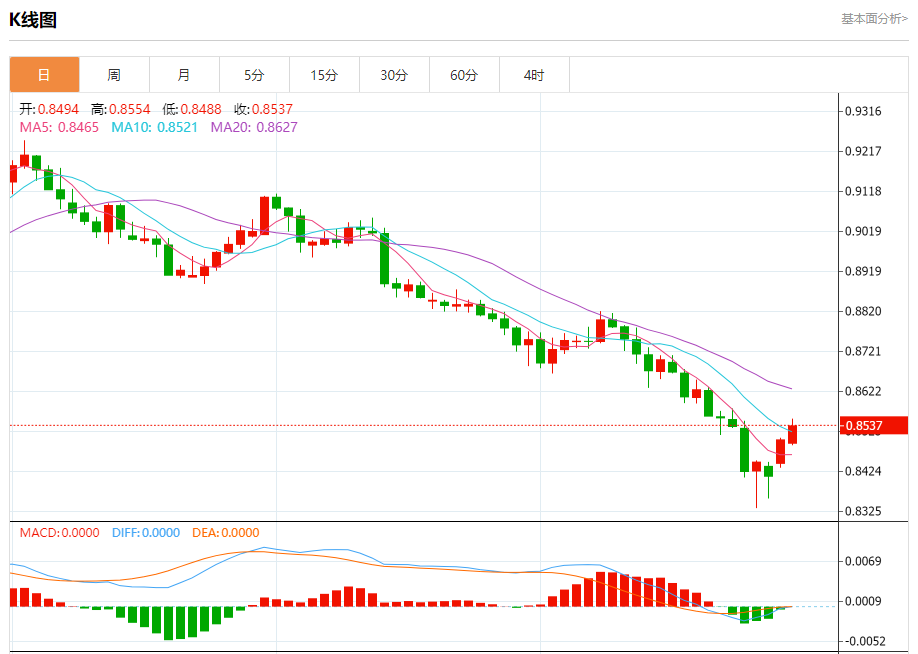 支撑位:0.8465 0.8445 0.8430