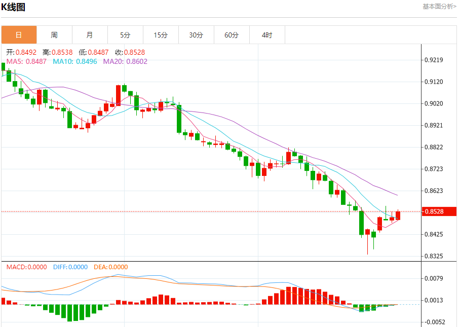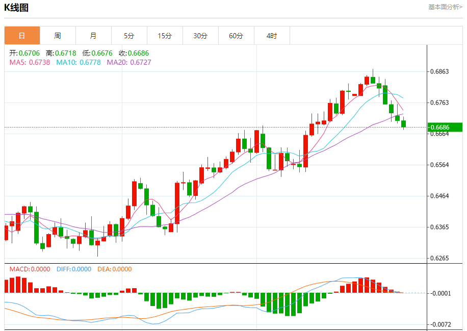 今日周五,澳元兑美元报0.6686,跌幅0.32%;美元兑加元报1.3376,涨幅0.18%;美元兑瑞郎报0.8530,涨幅0.32%。