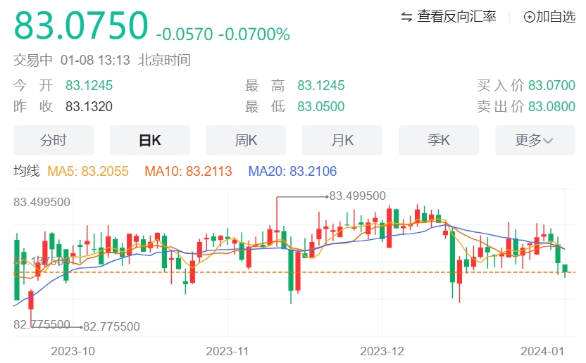 印度卢比本交易日走强。 自9月以来,美元兑印度卢比一直维持在82.80-83.40的交易区间内。 从技术上来看,该货币对的看涨前景似乎很脆弱,因为该货币对将穿过日线图上关键的100期指数移动平均线(EMA)。 此外,14天相对强弱指数(RSI)低于50.0中位数,显示不排除进一步下跌的可能。