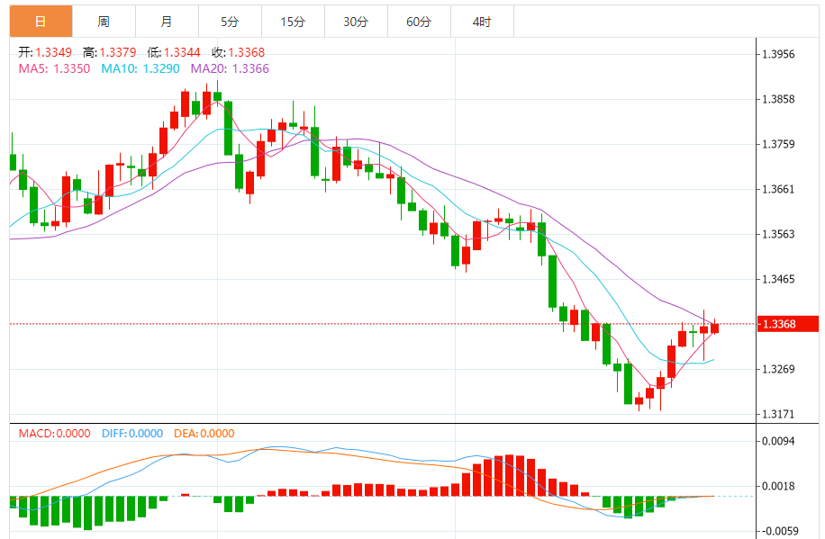 周一,美元/加元徘徊于1.3370关口下方,现交投于1.3368附近,涨幅0.04%。