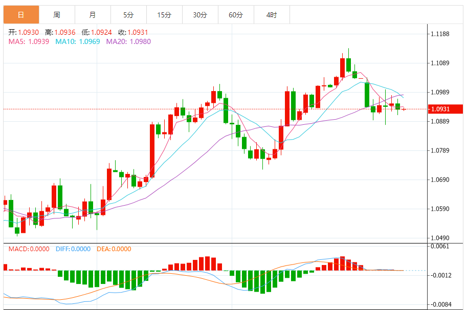周三,欧元/美元徘徊于1.0932关口下方,现交投于1.0931附近,涨幅0.01%。