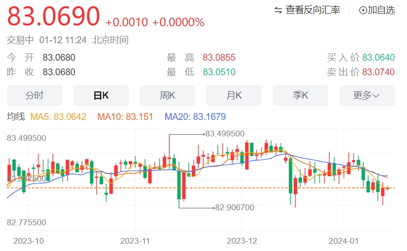 印度卢比当日走弱。自 2023 年 9 月以来,美元/印度卢比货币对一直在熟悉的 82.80-83.40 交易区间内交易。从技术角度来看,美元/印度卢比保持看跌基调,因为该货币对保持在关键的 100 周期指数移动平均线 (EMA) 下方。此外,14 天相对强弱指数 (RSI) 低于 50.0 中点,表明不能排除进一步下跌的可能性。