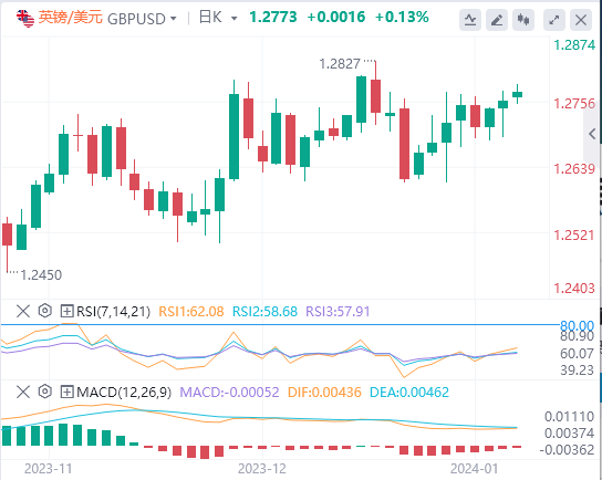 1月12日,英镑/美元该货币对小幅上涨,报1.27715,涨幅为0.09%。该货币对的枢轴点目前为1.2733美元,一系列阻力位设定在1.2783美元、1.2827美元和1.2877美元。