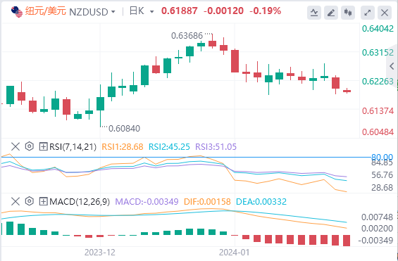纽元/美元周一回落至近期低点,跌破0.6200关口,美元走强,纽元/美元遭到抛售,市场重新平衡,美国市场为纪念马丁·路德·金纪念日而休市。