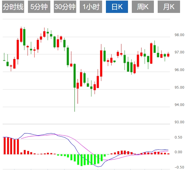 日线图显示,澳元/日元偏向上行,不过继收窄前期跌幅之前曾刷新了四天低点96.58。 澳币/日圆构筑鎚头K线,通常是看涨讯号,不过澳币/日圆在两个月下行阻力趋势线(约97.00/10)处面临阻力,一旦突破,可能为进一步上行铺路。