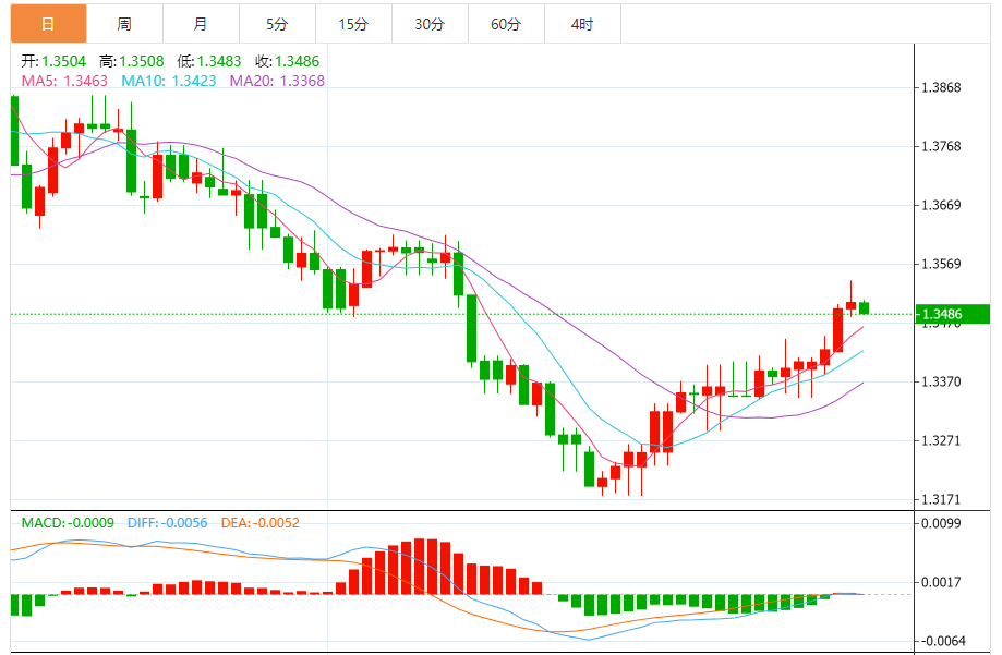 周四,美元/加元徘徊于1.3487关口下方,现交投于1.3485附近,跌幅0.14%。