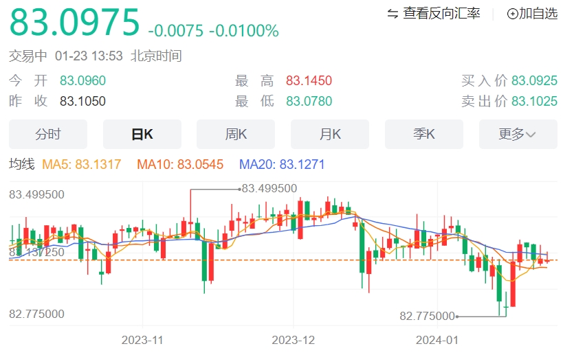 技术分析:印度卢比保持在82.80至83.40之间区间波动