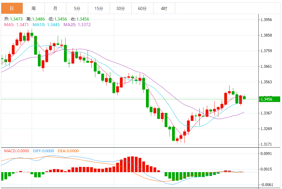 周二,美元/加元徘徊于1.3458关口下方,现交投于1.3457附近,跌幅0.16%。