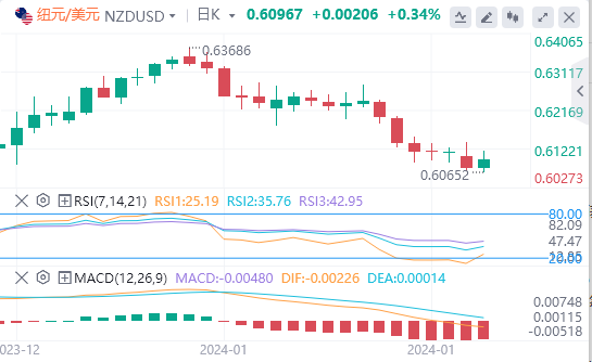 新西兰商业协会周二公布的最新数据显示,新西兰12月商业服务业表现指数(PSI)录得48.8,低于11月的51.2。此外,受房地产危机、消费者和企业信心低迷等因素的影响,对中国经济增长势头的担忧依然存在。这些担忧给纽元带来了下行压力,进而削弱了纽元/美元。