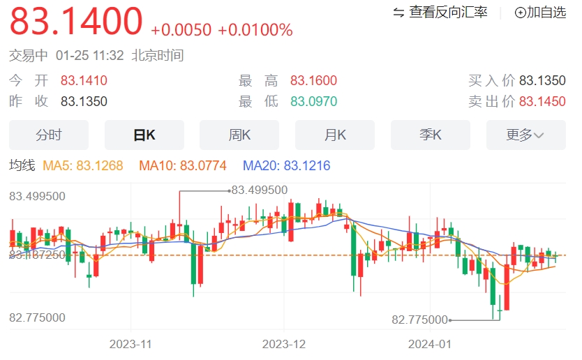印度卢比当天走弱。自 2023 年 9 月以来,美元/印度卢比一直停留在 82.80–83.40 的交易区间内。美元/印度卢比恢复上行,因为该货币对在日线图上保持在关键的 100 周期指数移动平均线 (EMA) 上方。然而,14 天相对强弱指数 (RSI) 徘徊在 50.0 中线附近,表明该货币对暂时没有方向。