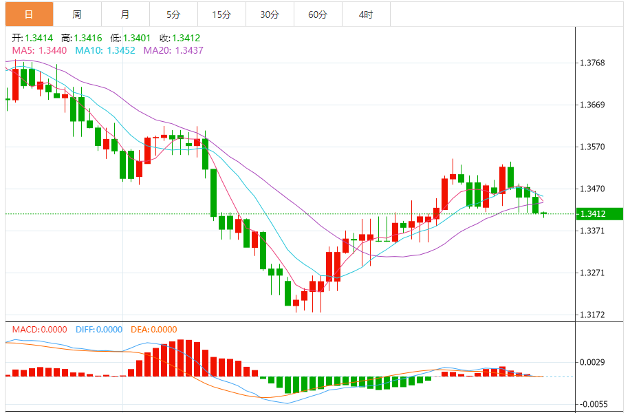 周二,美元/加元徘徊于1.3414关口下方,现交投于1.3413附近,跌幅0.01%。