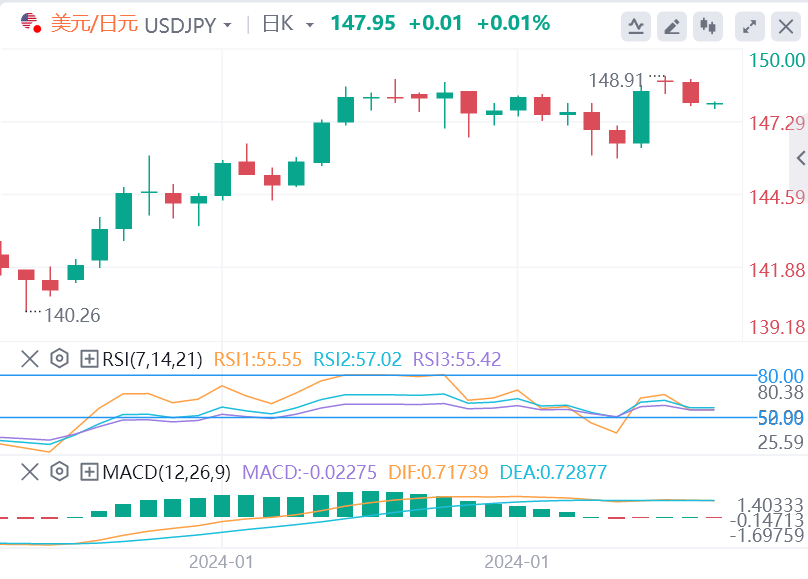 另一方面,在即将到来的强于预期的美国宏观数据的支撑下,美联储(Fed)将在更长时间内保持较高利率的预期继续支撑美元(USD)。此外,几位联邦公开市场委员会(FOMC)成员最近发表的鹰派言论进一步迫使投资者缩减对2024年提前大幅降息的押注。这仍然支撑着美国国债收益率的上升,并对美元起到了利好作用,这反过来又帮助美元/日元在147.70区域附近吸引一些逢低买盘。