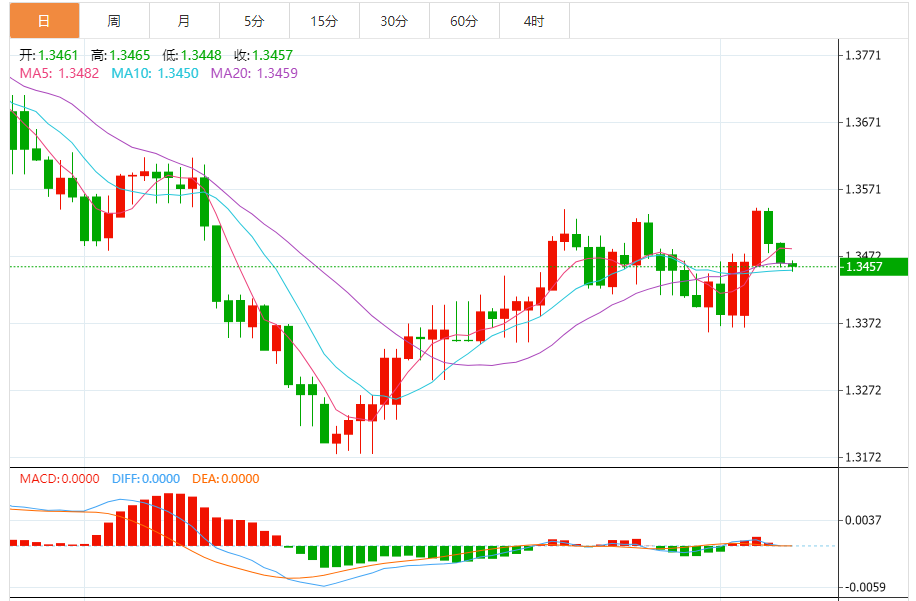 周四,美元/加元徘徊于1.3459关口下方,现交投于1.3457附近,跌幅0.03%。