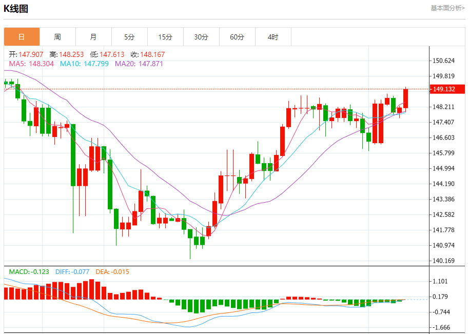 今日周四,欧元兑美元报1.0758,跌幅0.14%;英镑兑美元报1.2604,跌幅0.18%;美元兑日元报149.175,涨幅0.67%。