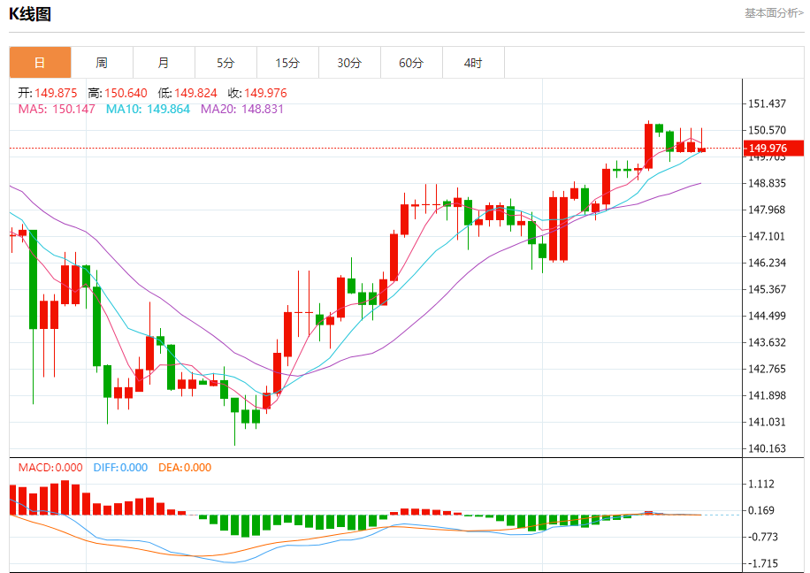 今日周一,欧元兑美元报1.0779,涨幅0.05%;英镑兑美元报1.2613,涨幅0.10%;美元兑日元报149.995,涨幅0.06%。