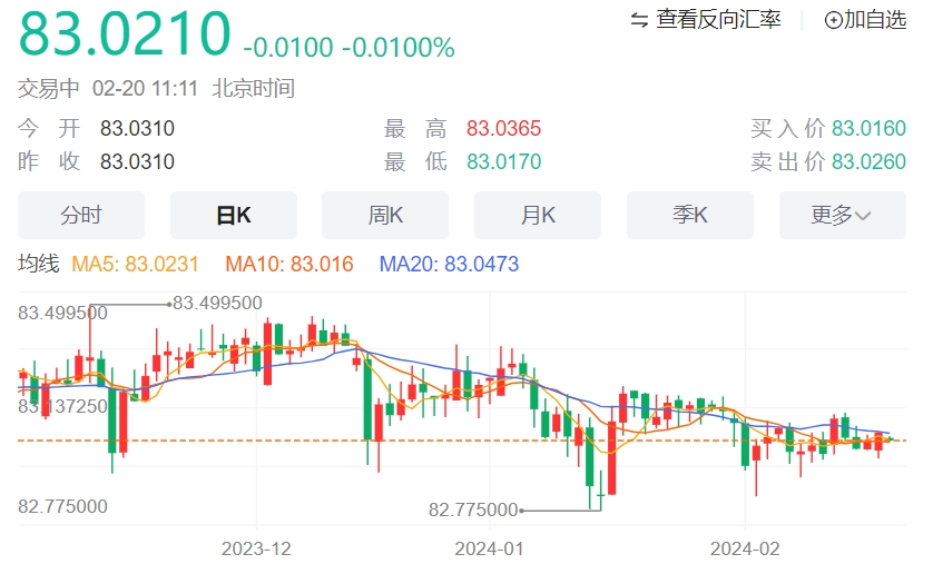 印度卢比当日交易走软。自 2023 年 12 月 8 日以来,美元/印度卢比仍停留在 82.70 至 83.20 之间的数月下降趋势通道内。