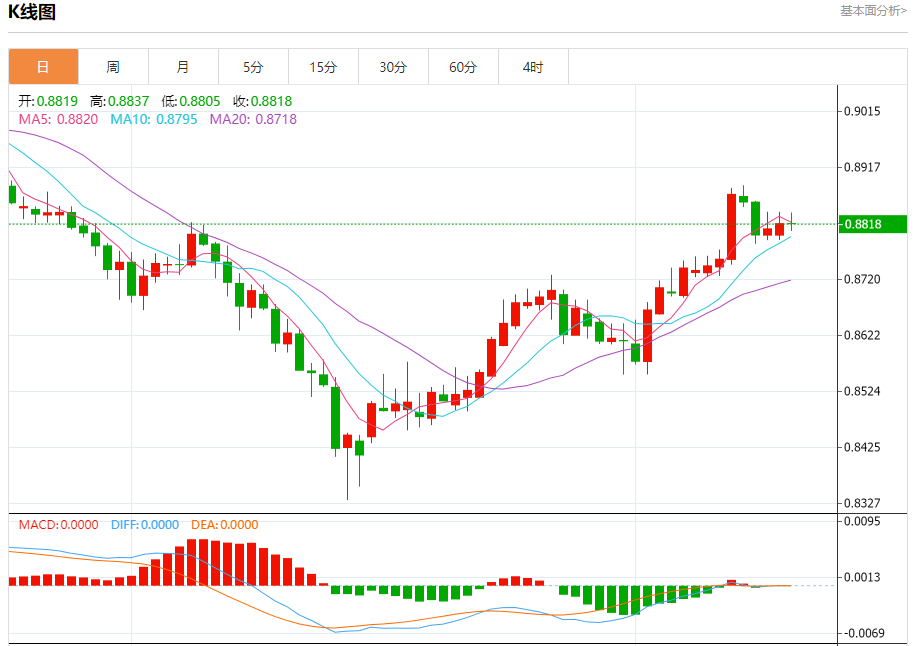 今日周二,澳元兑美元报0.6566,涨幅0.43%;美元兑加元报1.3475,跌幅0.10%;美元兑瑞郎报0.8820,跌幅0.03%。