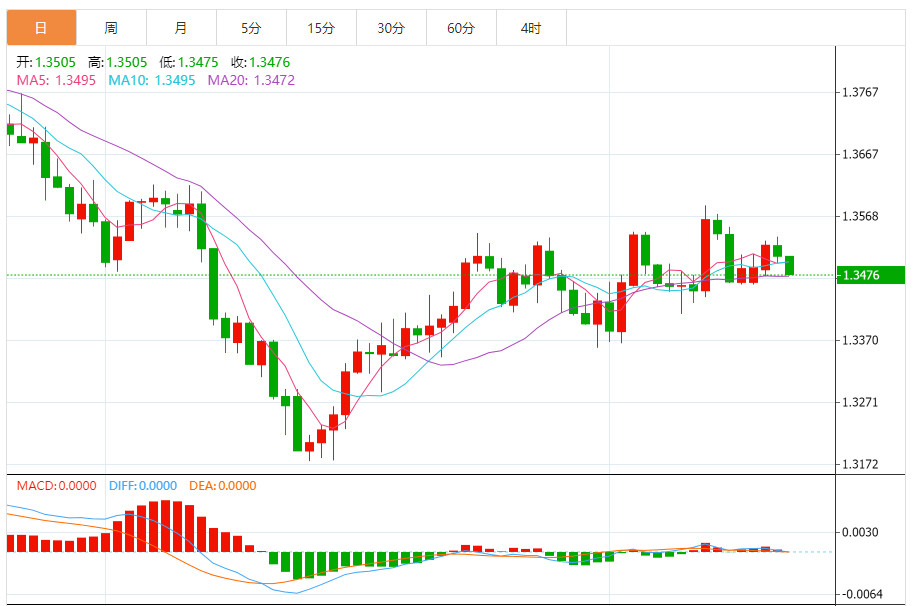 周四,美元/加元徘徊于1.3477下方,现交投于1.3475附近,跌幅0.22%