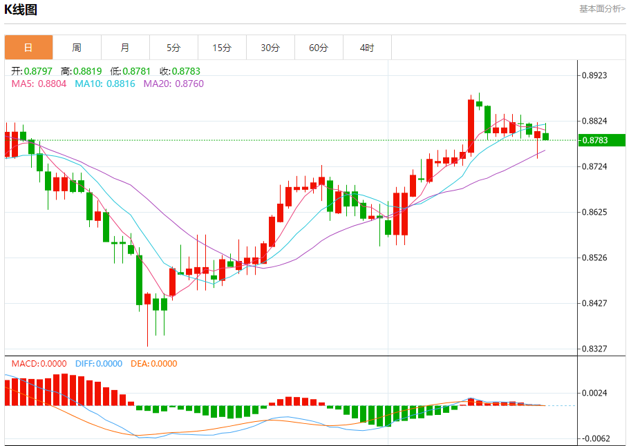 技术点评:0.8795附近形成了一个支撑的底部,将带来走势短期内的稳定。