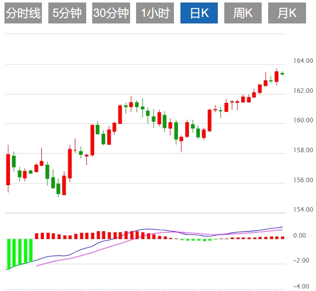 今日预期交易区间在162.80到163.70之间