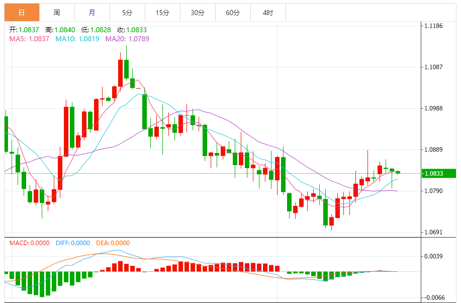 周四,欧元/美元徘徊于1.0833关口下方,现交投于1.0832附近,跌幅0.06%。