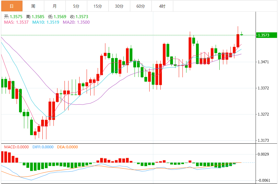 周四,美元/加元徘徊于1.3574下方,现交投于1.3573附近,跌幅0.02%