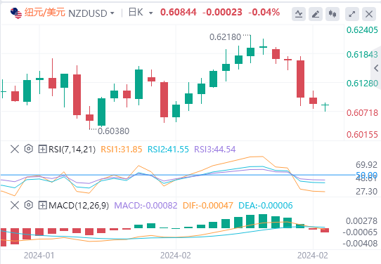 关于预期,市场似乎已经放弃了美联储在3月或5月降息的希望,转而将宽松周期的启动时间推到了6月,这似乎正在推动纽元/美元下跌。