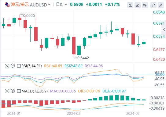 澳元在周四公布的澳大利亚零售销售和私人资本支出数据公布后获得提振。此外澳洲JudoBank制造业PMI表明该国制造业部门轻微改善,2月指标上升至47.8,前值47.7。