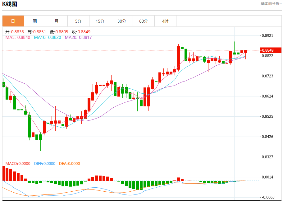 支撑位:0.8800 0.8780 0.8765