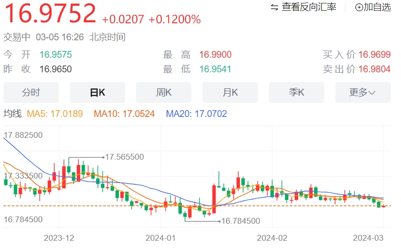 美元/墨西哥比索有望连续第三个交易日收盘下跌,买盘跌至1月份上一次出现的图表区域。2024 年的技术底线位于 1 月份的波段低点,进入 16.80 手柄,该货币对继续从 200 日简单移动平均线 (SMA) 17.25 下跌。