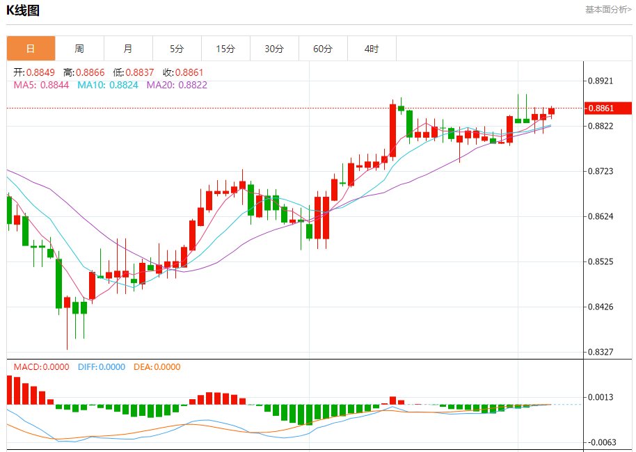 今日周二,澳元兑美元报0.6491,跌幅0.25%;美元兑加元报1.3597,涨幅0.17%;美元兑瑞郎报0.8863,涨幅0.15%。