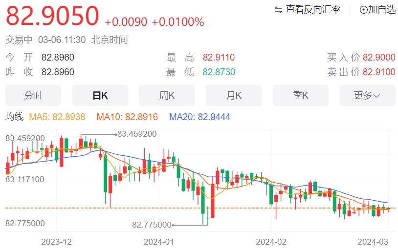 印度卢比当天走弱。美元/印度卢比在82.65-83.15附近扩大区间,这是自2023年12月8日以来的数月下降趋势通道。美元/印度卢比的看跌前景保持不变,因为该货币对低于日线图上的100日指数移动平均线。值得注意的是,14 天相对强弱指数 (RSI) 证实了看跌势头,因为它位于 50.0 中线下方,暂时支撑卖家。