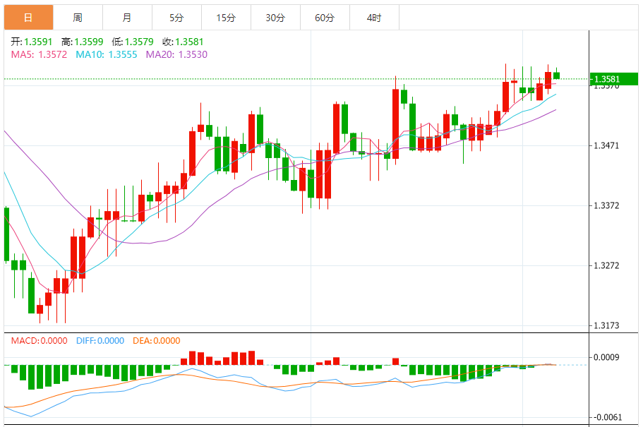 周三,美元/加元徘徊于1.3583下方,现交投于1.3582附近,跌幅0.08%。