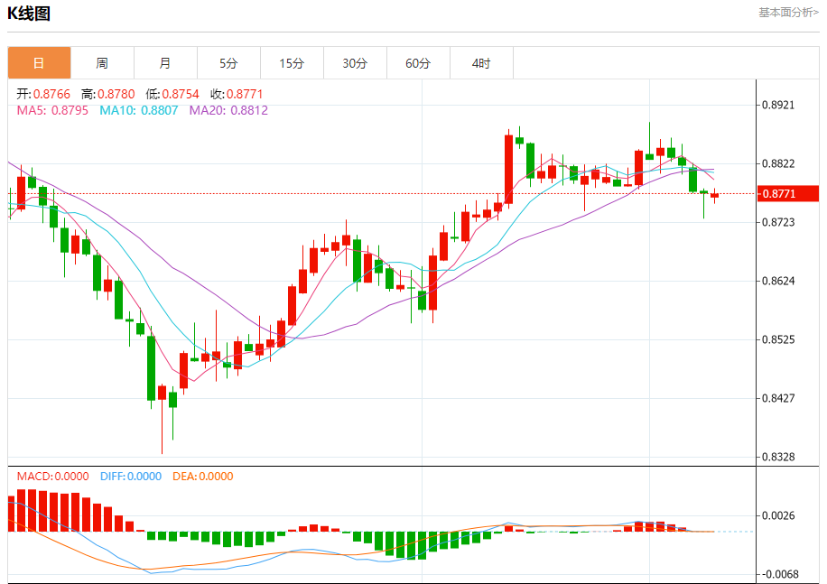 支撑位:0.8740 0.8725 0.8705