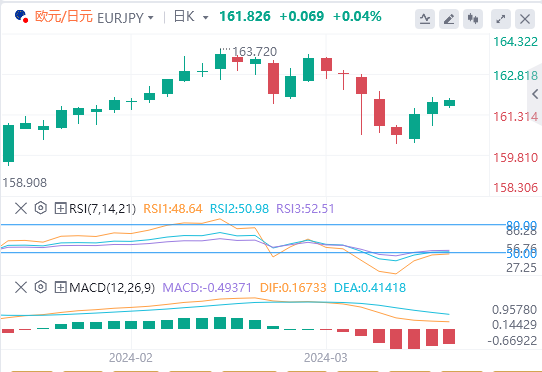 本月初,欧央行行长拉加德表示,启动降息将在6月份的会议上进行,而不是在4月份。欧洲央行决策者发表这些鸽派言论可能会阻止欧元的上行空间,成为欧元/日元叉盘阻力。