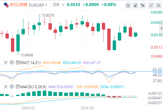 市场对欧洲央行降息的预期倾向于6月的政策会议。几位欧洲央行政策制定者也倾向于在6月做出降息决定,因为欧元区经济的通胀压力已大幅下降。核心通胀率在2月份放缓至3.1%,经济前景没有明显改善的迹象,这将使价格压力保持有限。