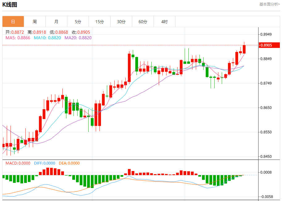 今日周三,澳元兑美元报0.6521,跌幅0.18%;美元兑加元报1.3588,涨幅0.15%;美元兑瑞郎报0.8907,涨幅0.28%。