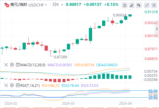 瑞郎继续受到瑞士国家银行(SNB)在通胀和经济增长放缓快于预期的情况下于3月份意外降息的影响。与此相反,由于有迹象表明美国经济仍具有活力,市场对美联储(Fed)降息的预期有所减弱。这反过来又有利于美元多头,验证了美元/瑞郎的乐观前景。